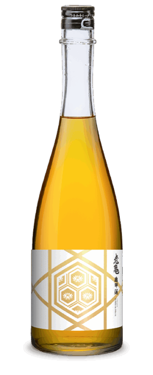 時を経るごとに味わいが出てくると見越して熟成させた純米酒。琥珀色は樹木の年輪のようにゆっくりと老亀の土蔵の中で時を重ねた証。